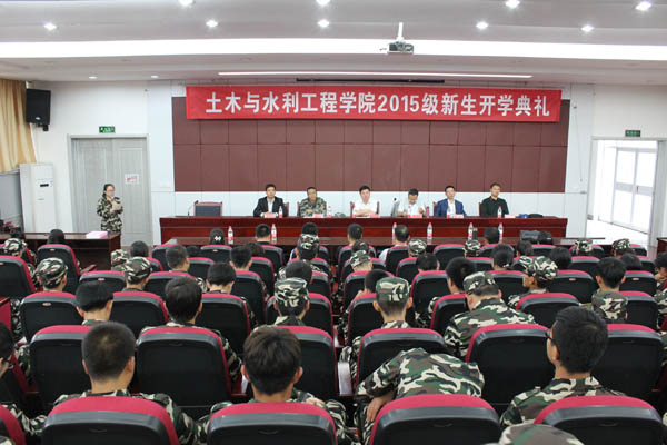 2015年9月8日下午,土木与水利工程学院2015级新生开学典礼在B 区研究生院二楼报告厅隆重举行。学院党委书记马正亮老师、副院长毛明杰老师、副书记王德全老师、副院长崔自治老师、李应海老师、各系系主任、三办一中心主任及2015级新生班主任老师出席了本次典礼。典礼由党委副书记张强老师主持。