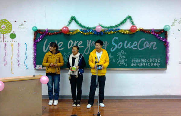 在工科楼第三阶梯教室举办了以“We are young so we can”为主题的英语朗诵比赛。本次比赛特别邀请到外国语学院郭晓燕老师、赵静老师、李天紫老师和快乐8
