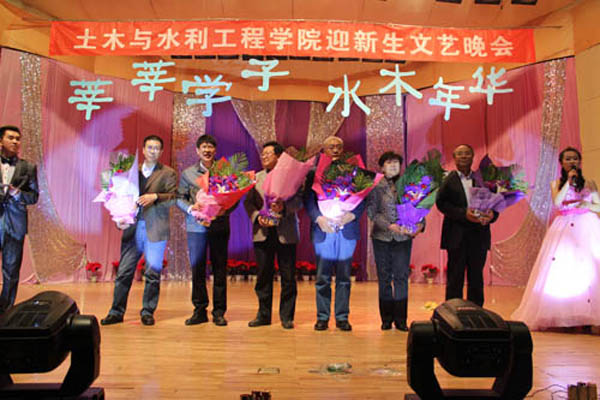 纪检委书记孔斌教授,副校级调研员兼学院院长田军仓教授,学院党总支书记马正亮老师,副院长姚青云老师、崔自治老师、尹娟老师、马彩霞老师,党总支副书记张强老师,博士生导师、三办主任、新生班班主任与2012级新生一起观看了晚会。