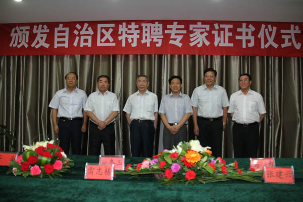 2012年8月3日,颁发自治区特聘专家证书仪式在银川兰花花国际大酒店贵宾厅举行。出席仪式的有自治区政府副主席屈冬玉,我校党委书记齐岳,我校副校级调研员兼快乐8