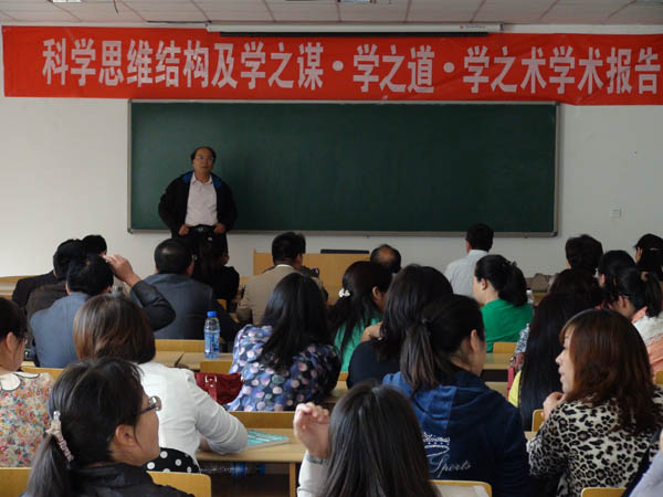 全体教职工做了题为《科学思维构建及学之谋、学之道、学之术》的专题报告。报告会由田军仓院长主持。