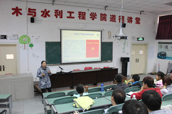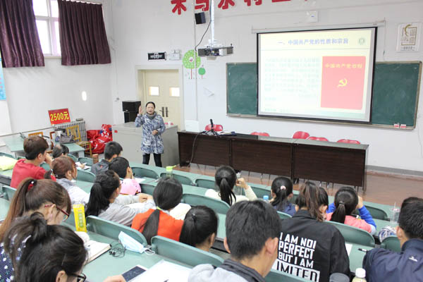 2016年4月13日下午,政法学院潘素洁老师受邀在工科楼三阶教室为快乐8 党员发展对象讲授党课。