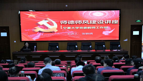 为深入贯彻落实教育部《新时代高校教师职业行为十项准则》、《关于高校教师师德失范行为处理的指导意见》等文件精神,推进《宁夏大学师德失范行为处理办法(试行)》顺利实施,进一步加强我校师德师风建设,使广大教师牢固树立“立德树人,教书育人”理念,营造风清气正、和谐健康的育人环境,2019年5月15日下午,土木与水利工程学院党委邀请宁夏大学师德师风建设宣讲团成员、物理与电子电气工程学院张轶炳教授在文萃校区知行楼三楼报告厅作了师德师风建设专题讲座,土木与水利工程学院90余名教职工听取了讲座。讲座由学院党委书记高继明主持。