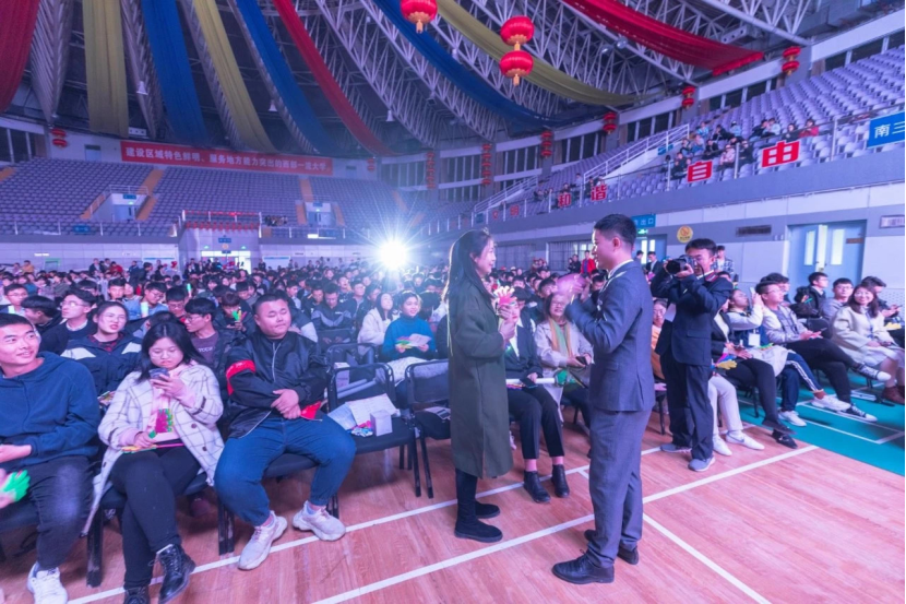 晚会过程中,还有现场抽奖和互动环节,通过“微信上墙”和“易班上墙”调动着观众的参与热情。一条条弹幕,一道道上墙信息,使得晚会更加欢乐。