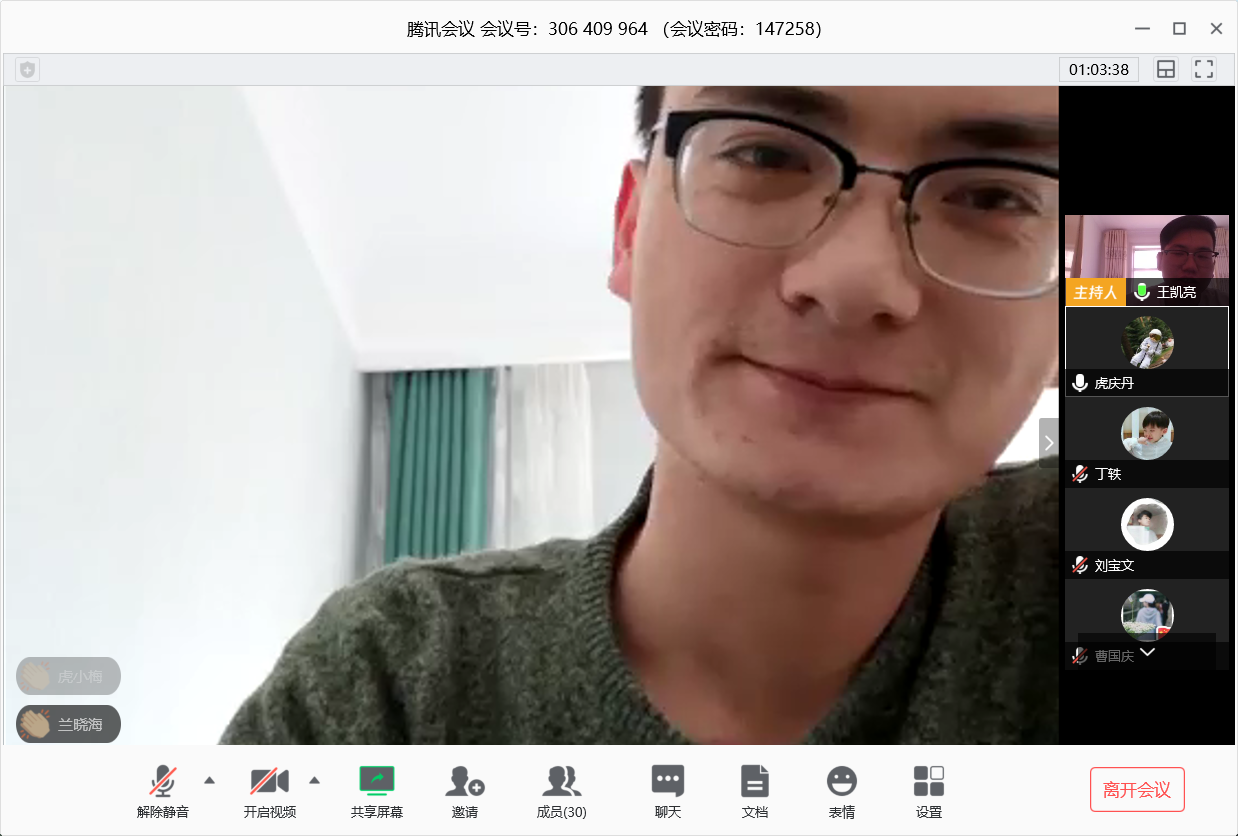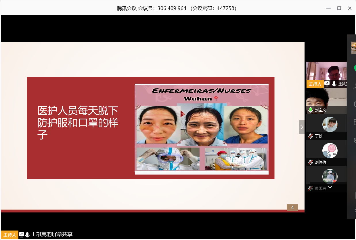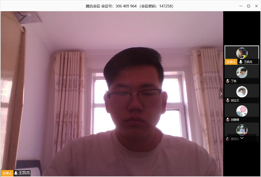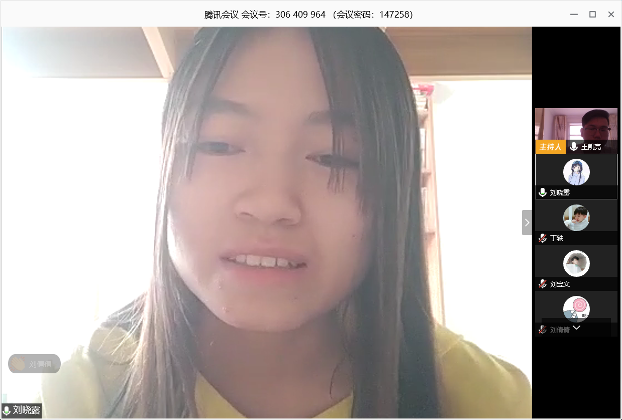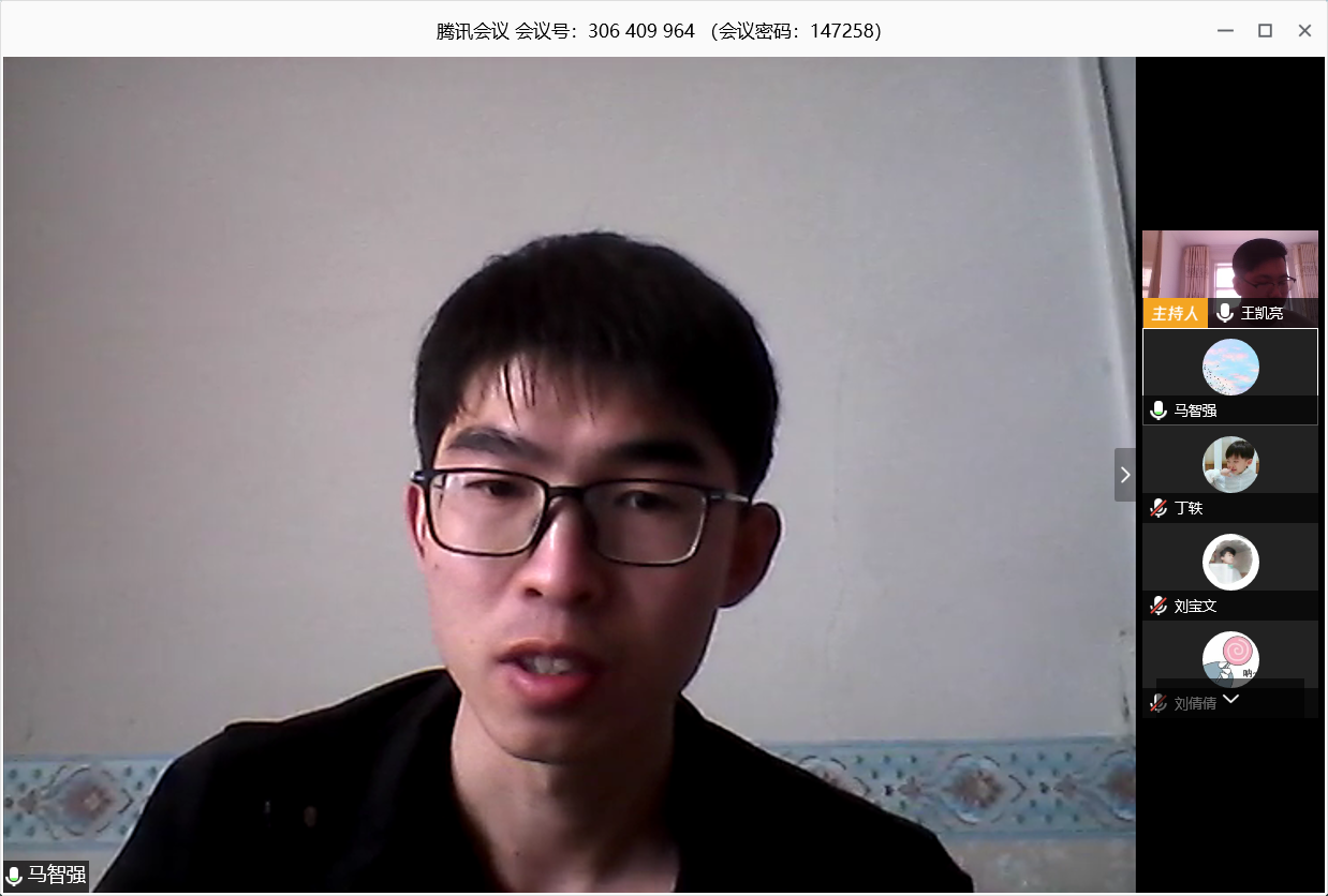 同学们还对网课情况展开了讨论。耿智磊同学提到网课可以便捷的回看相关内容,可以更有效的学习,但是在和同学老师面对面互动中还不能满足。曹凯同学提到网课是对眼睛的“巨大”考验,希望同学们能合理用眼,保护视力。刘宝文同学提到网课也是有利有弊,希望大家能尽可能的扬长避短。主持人王凯亮同学总结到,网课是在特殊时期的一种新事物,在刚启动的时候也存在一些问题,但是随着技术的更新和师生适应度的不断提高,网上授课的质量也在进一步的提高,他还为大家分享了一些护眼小知识。