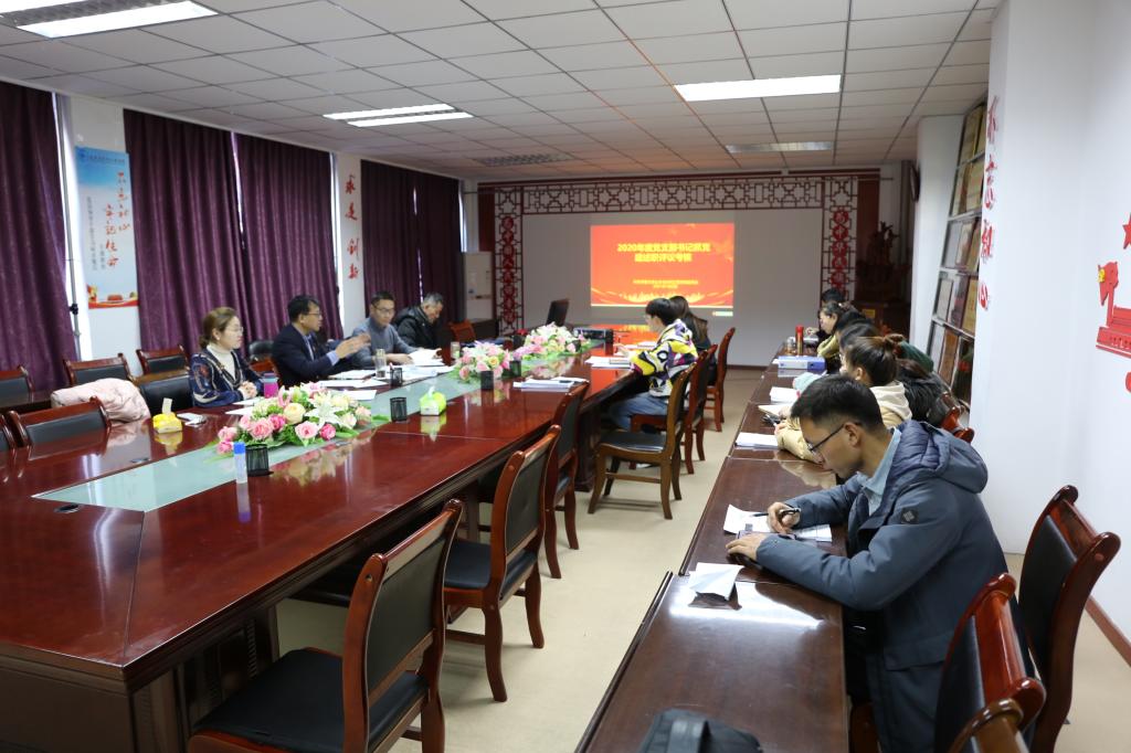 举行党支部书记抓党建述职评议考核暨2021年党建工作推进会,学院党委书记张晓天、副书记苏宇静、柳松洁担任评委,学院5个教工党支部和8个学生党支部书记分别进行述职。