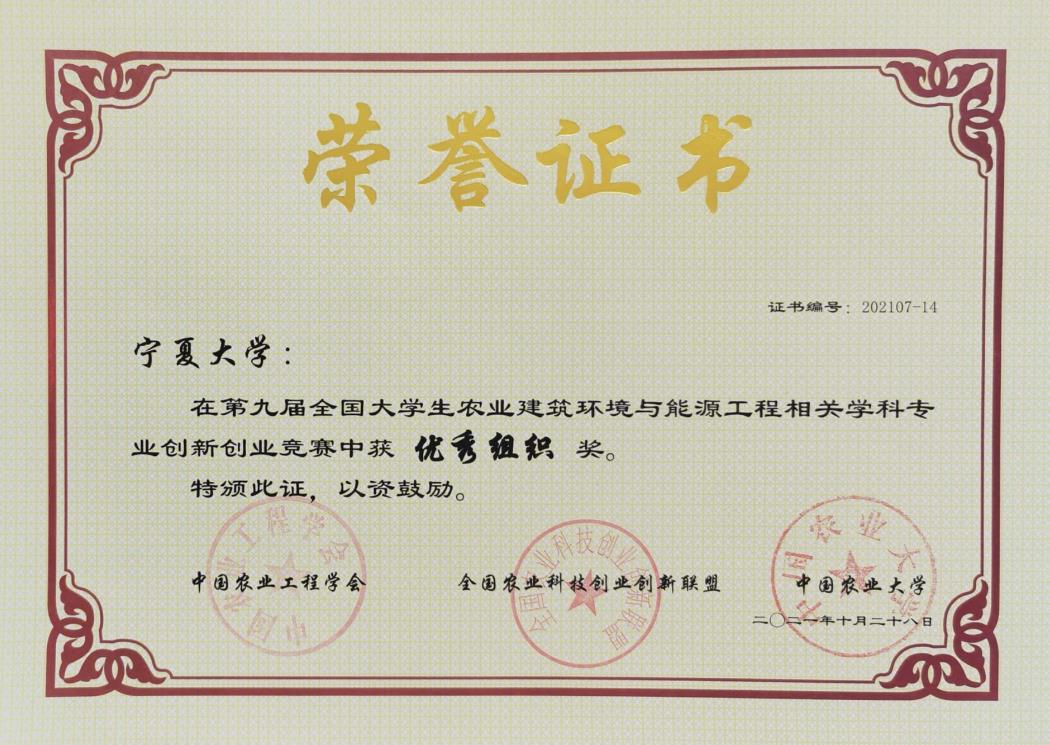 全国大学生农业建筑环境与能源工程相关专业创新创业竞赛始于2013年,赛事每年举办一次。已经成为全国大学生创新创业竞赛中层次高、综合性强、影响广泛的竞赛之一,为我国农业工程类优秀青年人才的脱颖而出创造了高质量平台。通过参加此次国家级竞赛,我校学生的专业知识、实践能力、设计水平、创新意识与创业能力都得到了很大程度提高。