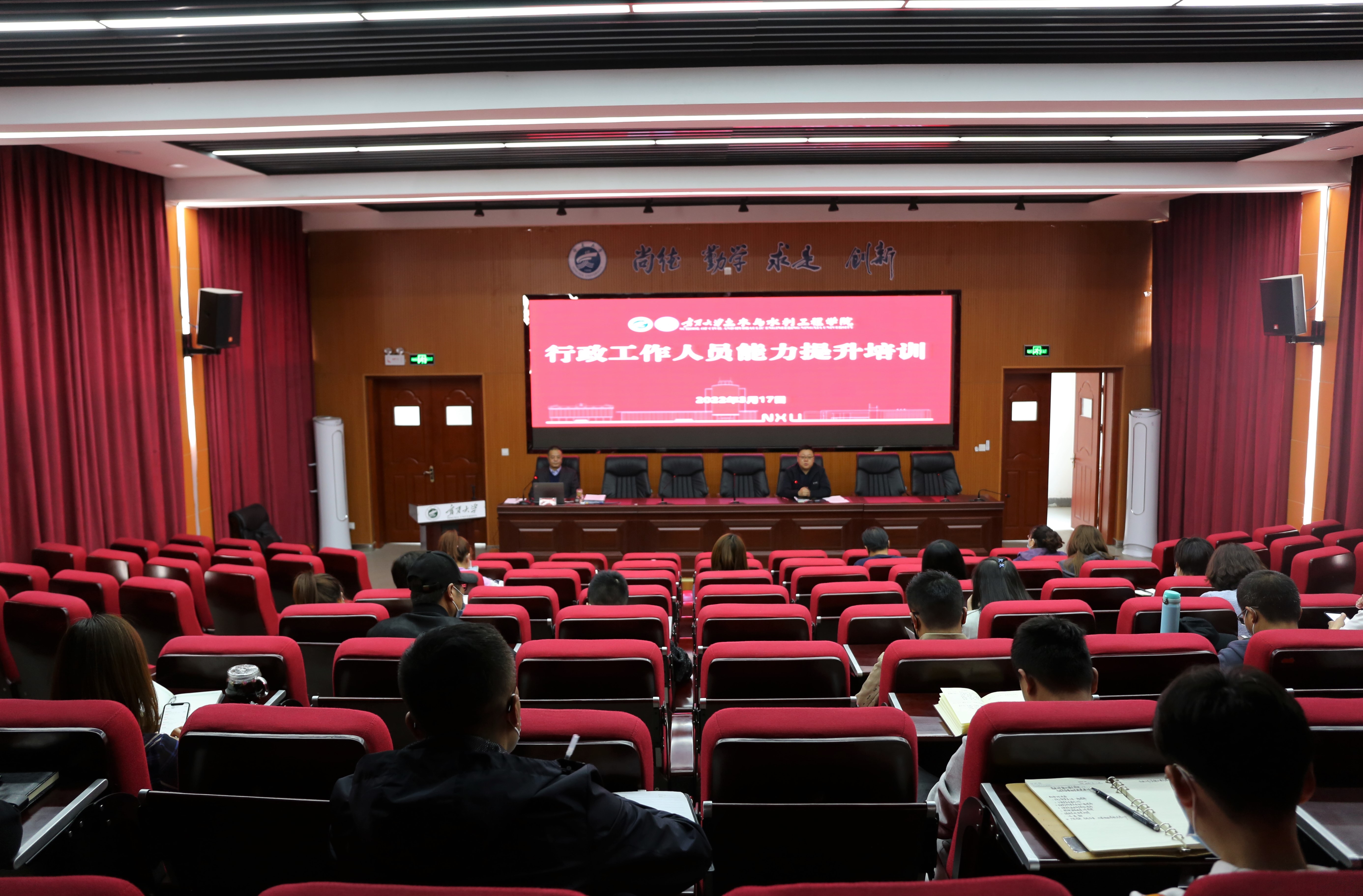 行政工作人员能力提升培训班”,邀请校党委组织部专职组织员李嗣丞做专题辅导培训。全体行政工作人员参加会议。会议由学院副院长朱磊主持。