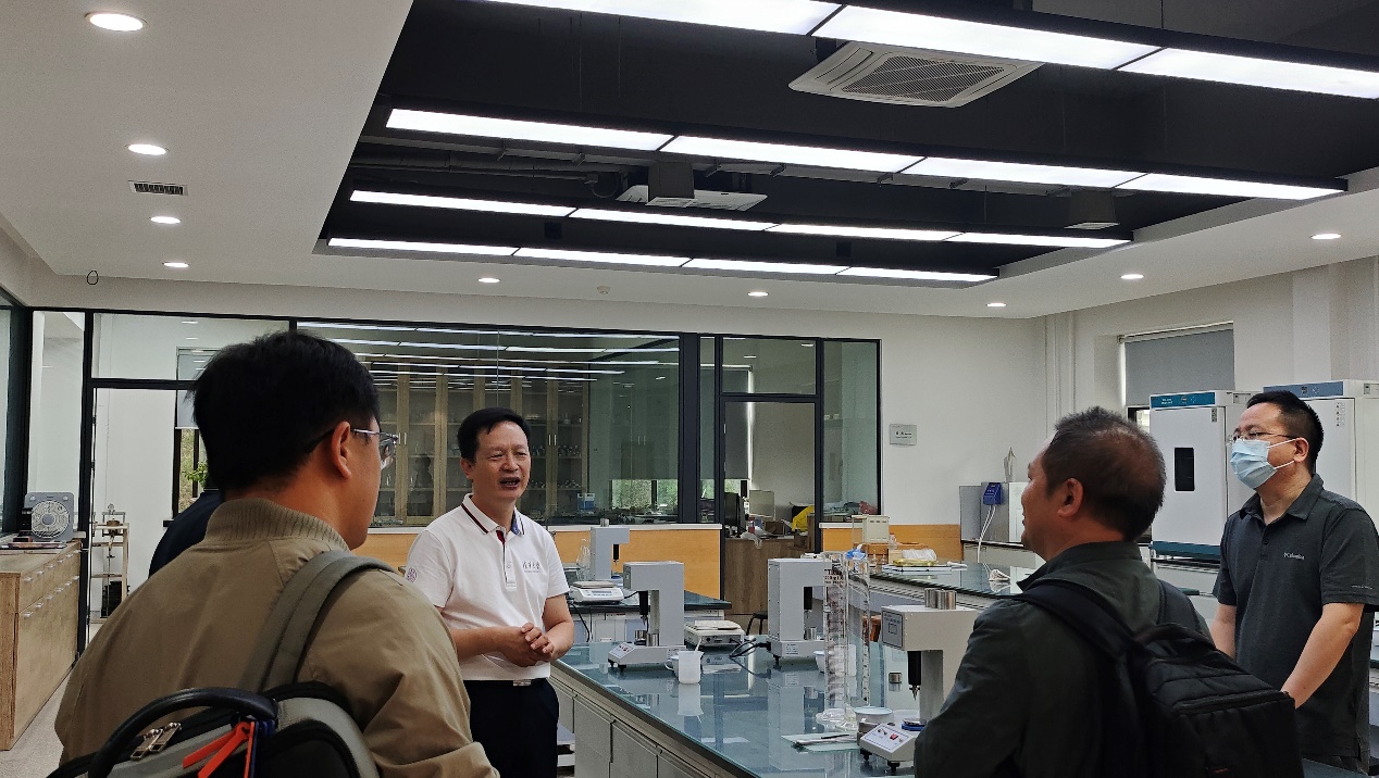 在清华大学水力实验馆(旧水利馆),李丹勋教授介绍了清华大学水利系的发展历史,尤其是一大批极具家国情怀的科学家和水利事业的奠基人,一张张照片、一件件实物,无不彰显着清华大学水利系的深厚积淀以及始终与国家民族同呼吸共命运的责任担当。随后,郑双凌老师通过幻灯片和实验设备现场展示操作的方式,向参访一行讲述了学校的教学理念,展示了自研的动量实验、孔口出流实验、局部水头损失等水力学实验教学设施,并介绍了疫情期间开发的水力学仿真教学系统。在土力学实验室,孙逊老师介绍了实验室承担的教学内容及组织教学情况,展示了土壤液塑性、强度和应力应变等参数的测定设备。期间,参访一行还与各位老师交流了实验室管理与责任落实机制等相关问题。
