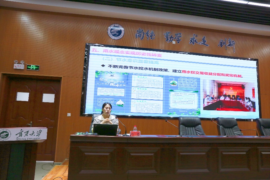 尹娟书记首先做了欢迎致辞并且表示我们邀请宁夏水利科学研究院来到我们学院作客,举行“世界水日”、“中国水周”水法宣传联合党日活动,对“宁夏四水四定及水权改革”进行宣讲,是推动党建与业务融合、加强沟通交流、深入联系的重要举措。希望通过此次活动,增加宁夏水利科学研究院、宁夏水利厅与我们学院的深入了解,共谋发展,为高校人才培养、科研合作拓宽渠道。