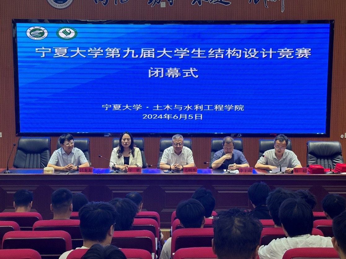 宁夏大学土木与水利工程学院院长毛明杰教授在闭幕式上致辞。他表示,结构设计大赛不仅是一个展示学生专业技能的平台,更是激发学生创造力和团队协作精神的重要契机。他鼓励同学们继续努力,不断提升自身素质,为未来的工程事业打下坚实基础。