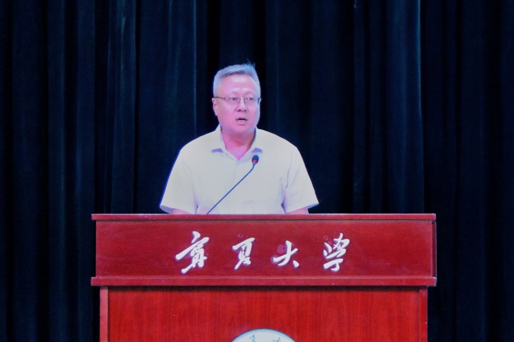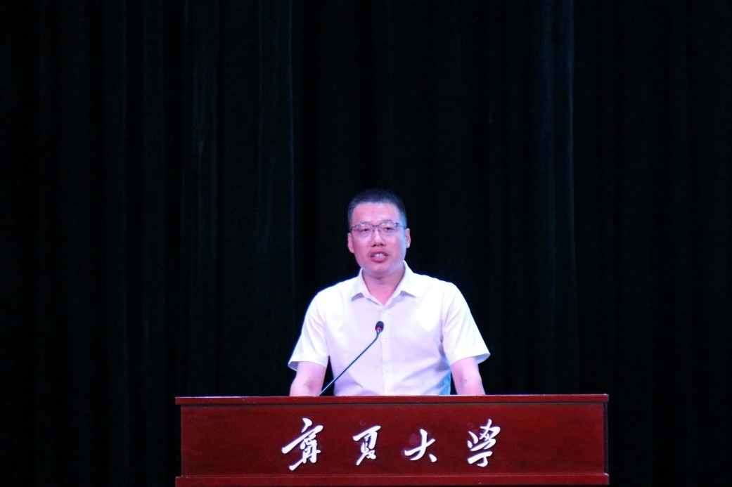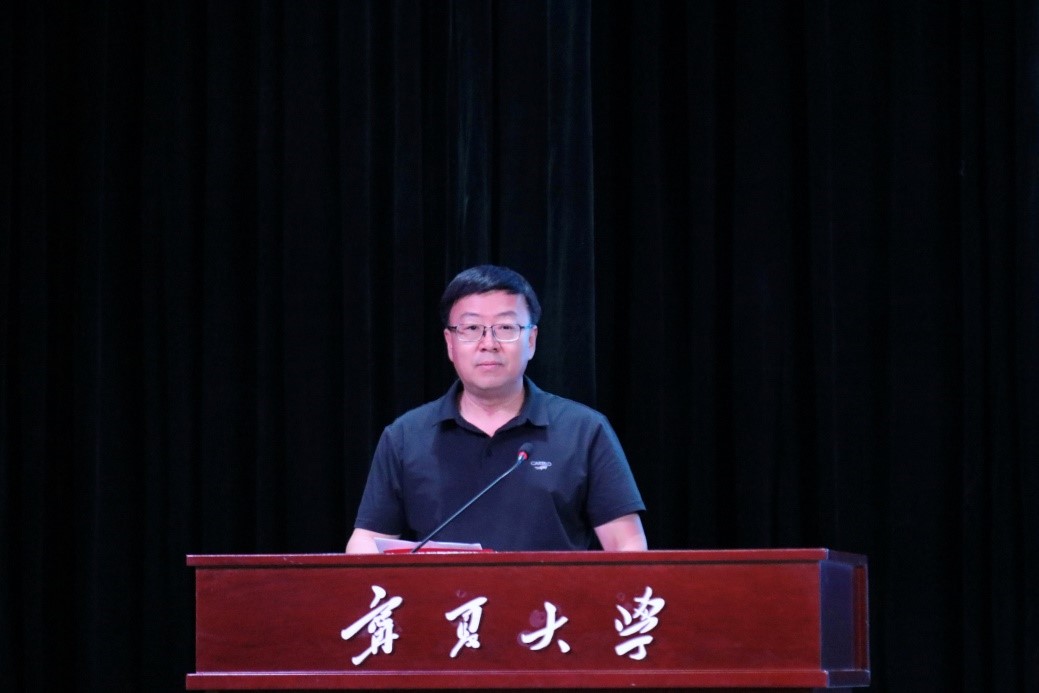 校团委肖功国书记宣布“极客空间杯”第八届宁夏大学生结构设计竞赛暨第十七届全国大学生结构设计竞赛分区赛开幕。