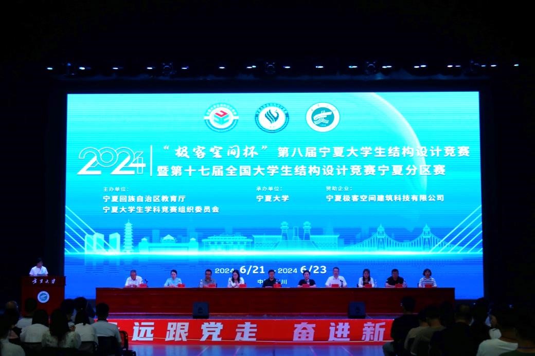 6月21日至23日,由宁夏回族自治区教育厅、宁夏大学生学科竞赛组织委员会主办,宁夏大学承办的“极客空间杯”第八届宁夏大学生结构设计竞赛暨第十七届全国大学生结构设计竞赛分区赛在我校大学生活动中心举办。宁夏大学党委常委、副校长黄河出席开幕式,宁夏建设职业技术学院、银川能源学院、北方民族大学、银川科技学院、宁夏理工学院,以及我校团委、创新创业学院、土木与水利工程学院相关负责人参加开幕式。开幕式由土木工程学院毛明杰院长主持。