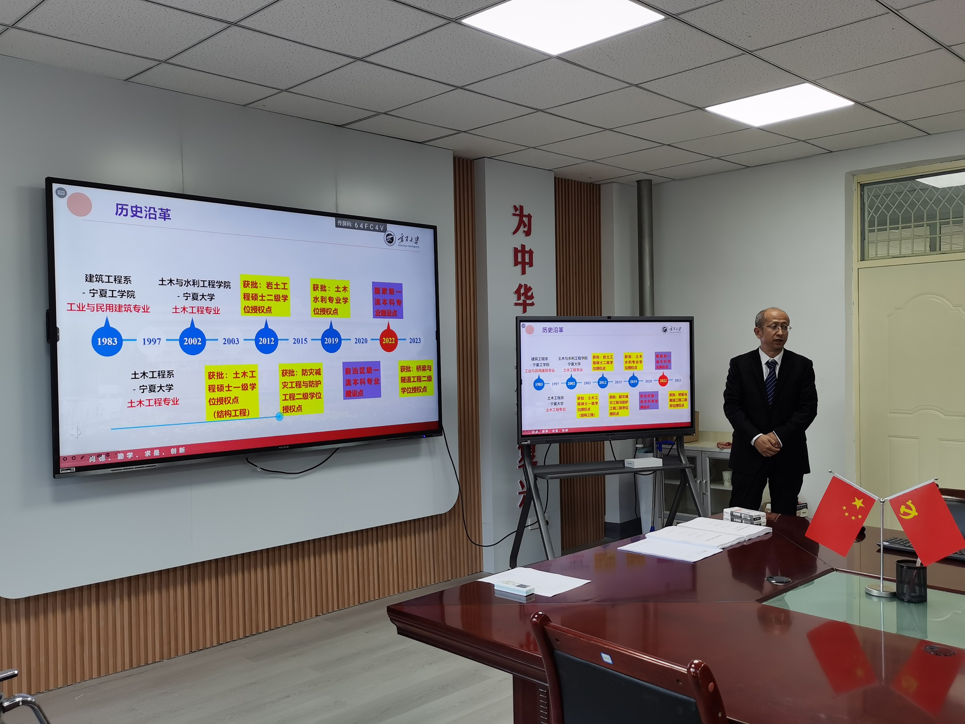 宁夏大学研究生院副院长尤桦,以及土木与水利工程学院党总支书记尹娟、院长毛明杰、副院长刘海峰、土木工程学科学术带头人、青年骨干教师等出席了此次会议。毛明杰院长首先介绍了会议专家,并对各位与会专家的到来表示热烈欢迎。刘海峰副院长围绕土木工程一级学科硕士学位授权点的基本情况、目标与标准、基本条件、人才培养、服务地方贡献等方面进行了自评汇报。专家组成员在听完汇报后,就相关问题进行了质询和交流,审阅了学位授权点自我评估报告,并分别与教师代表、研究生代表进行了座谈。