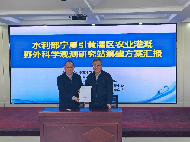 双方首先介绍完本单位基本情况,在听取了水科院介绍“水利部宁夏引黄灌区农业灌溉野外科学观测研究站”筹建方案后,双方签署了《水利部野外站联合共建协议》。