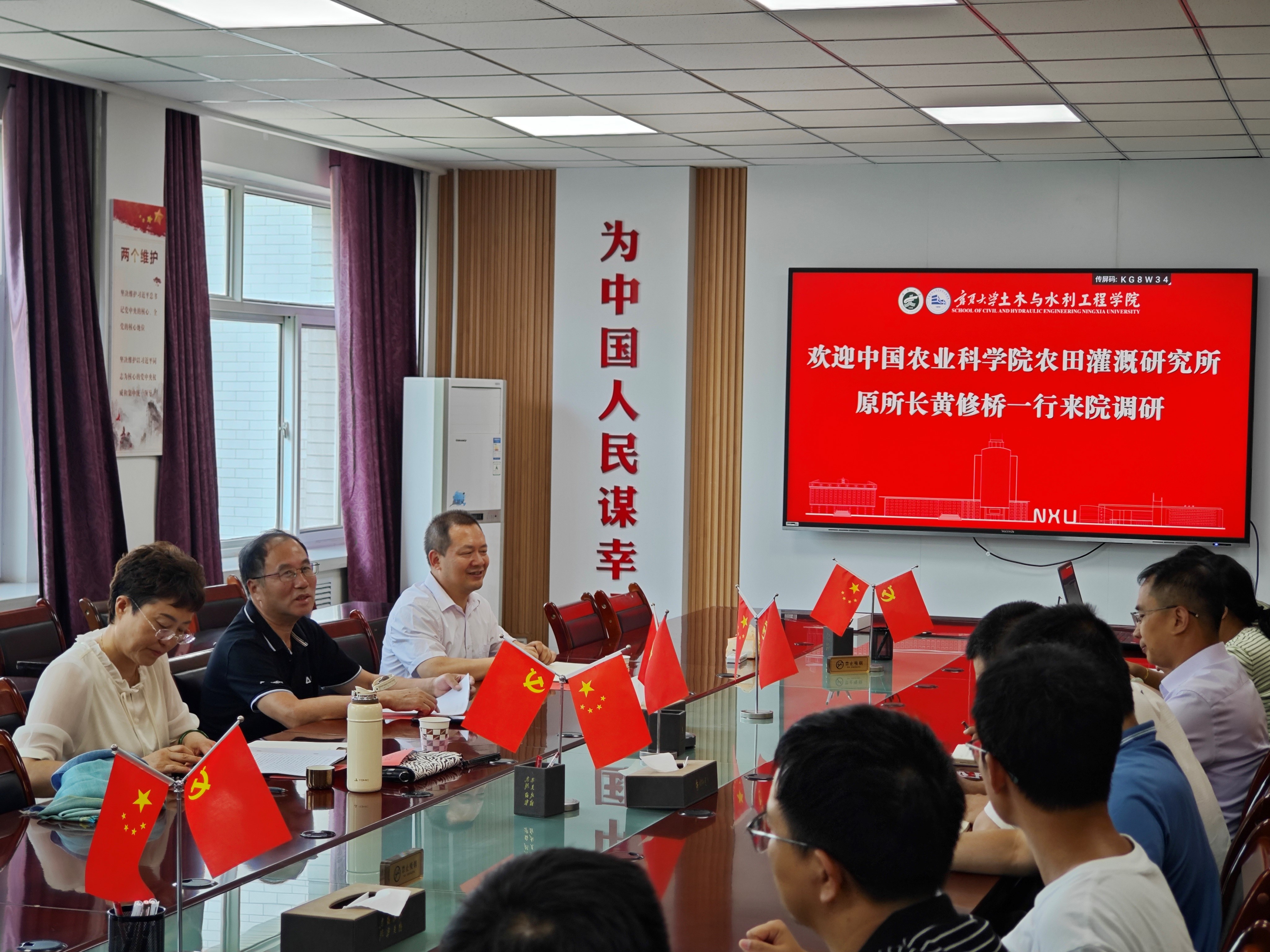 2025年7月9日,中国农业科学院农田灌溉所原所长黄修桥一行应邀访问宁夏大学土木与水利工程学院,双方于知行楼415召开了座谈交流会,学院党总支书记尹娟、副院长李王成、水利系主任王炳亮、水利系副主任李超超、水利系党支部书记吴璞伟,以及各方向负责人和教师代表参加了座谈会。座谈会议由副院长李王成主持。