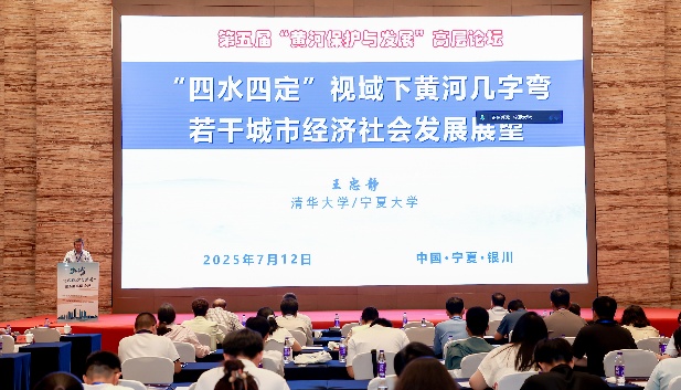2025年7月11日至13日,由宁夏大学、中国自然资源学会水资源专业委员会、国际水资源学会中国委员会(CWRA)水资源管理与节约专委会主办,宁夏大学土木与水利工程学院承办的“第五届黄河保护与发展高层论坛”在银川国际交流中心举隆重举办。宁夏大学副校长赵晓佳,宁夏大学原副校长王忠静,宁夏大学原副校长田军仓,河海大学原副校长董增川,西安理工大学副校长李占斌,本届会议组委会联合主席、中国自然资源学会副理事长左其亭,水利部节约用水促进中心侯坤,土木与水利工程学院党总支书记、宁夏大学水利水电一流学科负责人尹娟、院长毛明杰、副院长刘海峰、李王成出席。来自全国20余省(市、自治区)的300余位代表参会,参会学者来自高校、科研院所、政府部门、企业等80余家单位,覆盖黄河流域九省区及长三角、京津冀等区域,充分体现了社会各界对黄河战略的高度关注与积极参与。论坛由尹娟主持。
