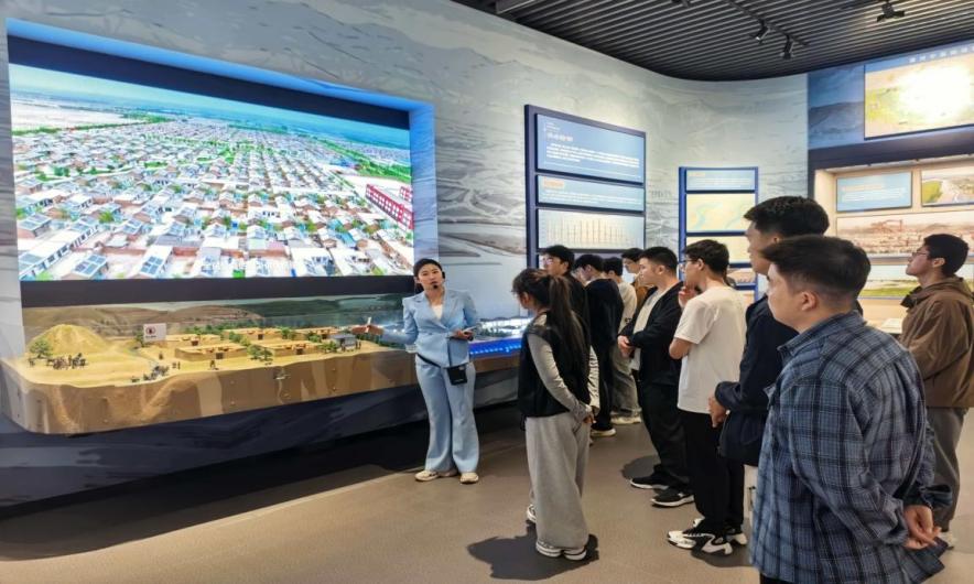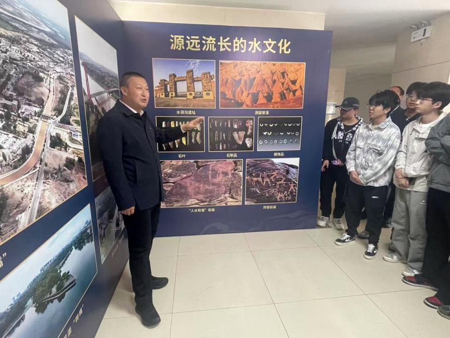 在黄河宁夏世界灌溉工程遗产展示中心讲解员以时间为轴,从秦汉古渠开凿讲到现代智慧灌区建设,从传统渠系布局讲到当代水利工程创新,通过历史文献、实物展品、工程模型、影像资料,让同学们沉浸式感受“天下黄河富宁夏”的水利根基,深刻理解宁夏引黄古灌区作为世界灌溉工程遗产的历史价值与时代意义。作为黄河水利文化传承、灌溉遗产价值传播的核心载体,该中心全景呈现宁夏引黄灌溉两千余年发展脉络、工程技艺与历史成就。