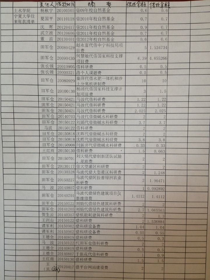 各单位往来款说明