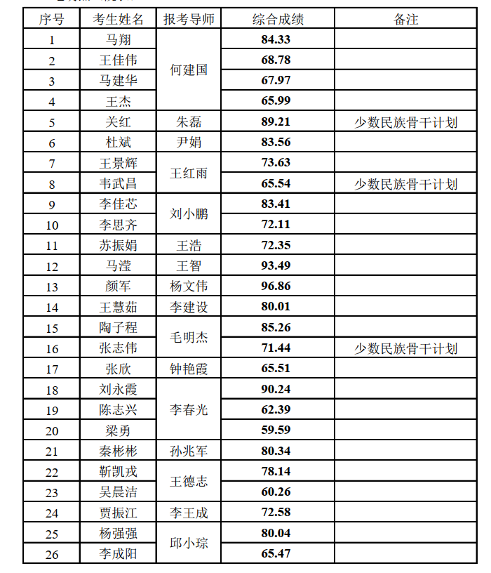 博士研究生申请—考核综合成绩公示