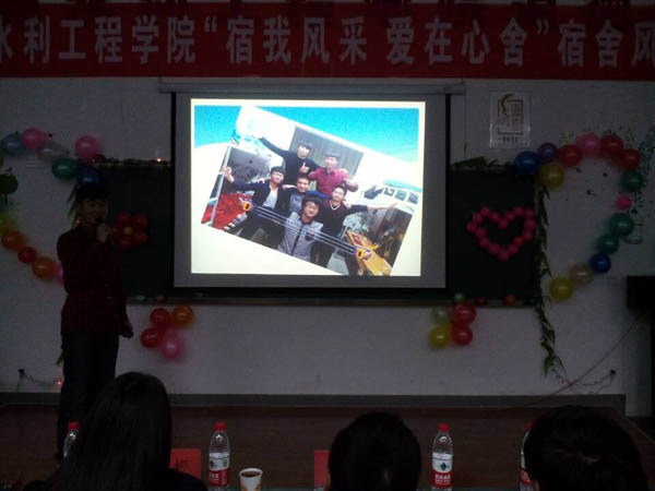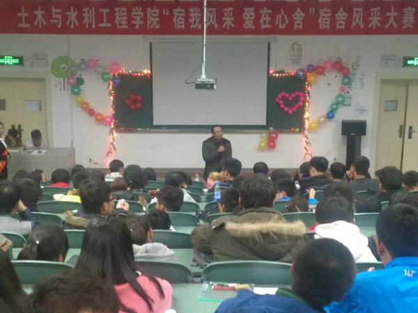 2014年11月23日晚,学院以“宿我风采,爱在心舍”为主题的宿舍风采大赛在工科楼三楼阶梯教室隆重举行。学院党委副书记张强老师,团委书记王娜老师和2014级学生代表参加了比赛。