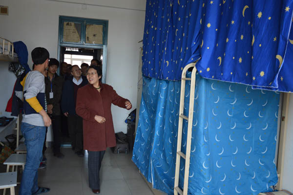 孔书记一行认真走访了学院男生宿舍,每到一个宿舍,孔书记都会仔细查看宿舍内物品的摆放情况和卫生状况,希望同学们树立“要会学习,更要会生活”的健康理念。在检查中,对精心布置、干净整洁的宿舍提出表扬,对个别宿舍则提出批评并督促改正。与此同时,孔书记与同学们亲切交流,详细了解在校期间的学习和生活,对同学们提出的问题也给予耐心解答。
