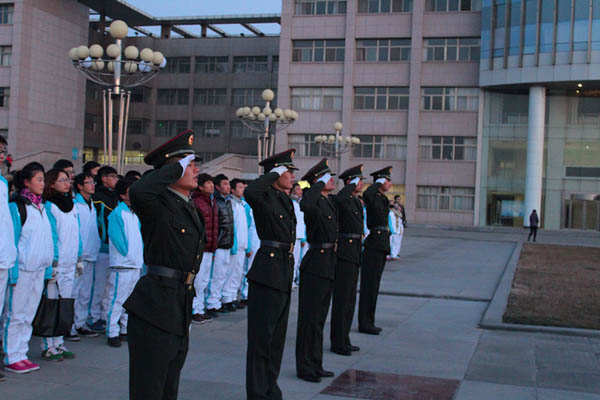 团委书记王娜老师,全体14级新生身着土水学院院服也参加了本次升旗仪式。