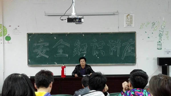 北校区保卫处二科科长贾鹏老师在工科楼第三阶梯教室为学院各班班长、团支书、安全信息员做安全知识讲座。