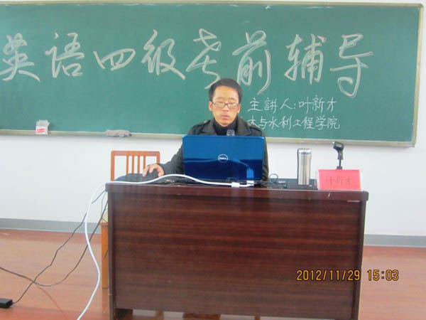 学生英语学习热情,帮助学生积极备战即将到来的全国大学英语四级考试,近日11级辅导员叶新才老师在工科楼第三阶梯教室为快乐8