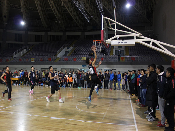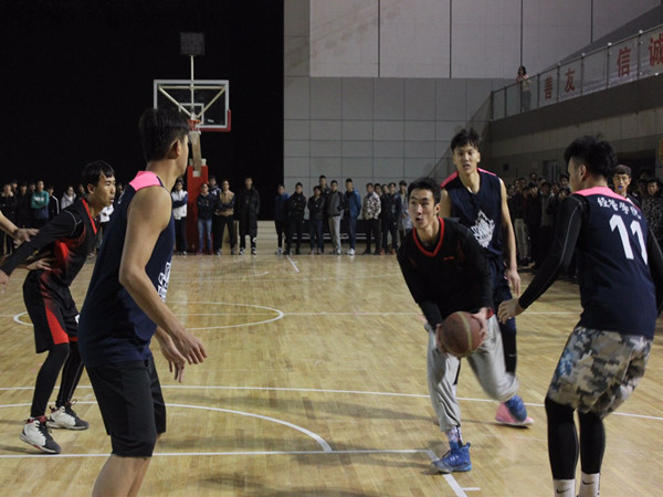 冬季的寒冷抵不过他们心中的激情,挡不住他们向前的脚步。看!那矫健的身影,那向前的勇气,无不为我土水男儿树立榜样!比赛初始,我们就落入下风,比分19:28,但是我们并没有放弃,而是一往无前的继续比赛,紧咬着精气不放松,比分始终拉不开,双方你来我往激烈的竞争着,你若进三分,我必突破你的防线,没有半点懈怠,不敢有丝毫的失神。那种激情影响着所有的现场观众,现场加油声越来越大,双方的拉拉队也开始了声音上的较量!加油声不绝于耳,那一刻所有的土水学子都在为我土水男儿加油鼓气,所有的土水学子心中都有着共同的信念!那就是拼搏,向前,不弃!