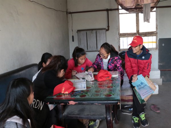 文萃校区出发,来到了军马场。孩子们热情欢迎同学们的到来,他们的到来,加上孩子们的欢声笑语融为一体,让寒冷的冬天变得温暖。“哇”的一声,有一个小孩因为怕生突然哭了起来,热心的志愿者耐心地去安抚她,看到她重展笑颜大家也都如释重负地笑了。一直以来,村里的孩子们做作业都有不小的困难,志愿者们主动走近村民家帮助孩子们辅导作业。志愿者解释道:跟小孩子相处一定要和他们玩,多鼓励他们,认认真真的陪伴他们。大家一起开心的玩耍,童年曾经百玩不厌的游戏让孩子们格外兴奋,捉迷藏,打沙包,荡秋千…在无声中传递着信任和温暖,家长们也纷纷感叹道:“快乐8
