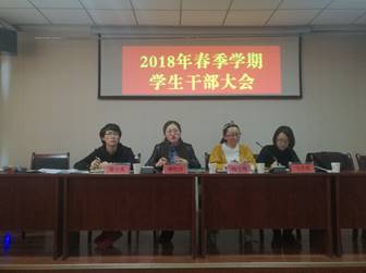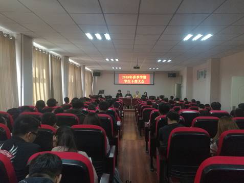 在知行楼五楼会议室举行了2018年春季学期学生干部大会,党委副书记柳松洁,学生工作办公室教师陶雪梅、蒋宇欢、马小凤,团委学生会主席团、部长团成员,各班团支书、班长、学习委员参加了会议。
