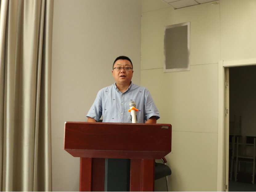 活动第三项,学院最年轻的博士生导师,朱磊老师,代表学院教师为新生指点迷津。他用幽默风趣的语言,向19级新生提出了三点建议,不要沉迷游戏;不要作弊;勇于挑战自我与同学合作。