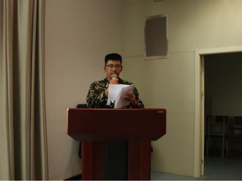 活动第一项,2019级新生代表田宇哲同学上台讲话。他用“长风破浪会有时,直挂云帆济沧海”这样一句诗句送给所有新生,预祝大家在学院的学习生活中能够取得成功。