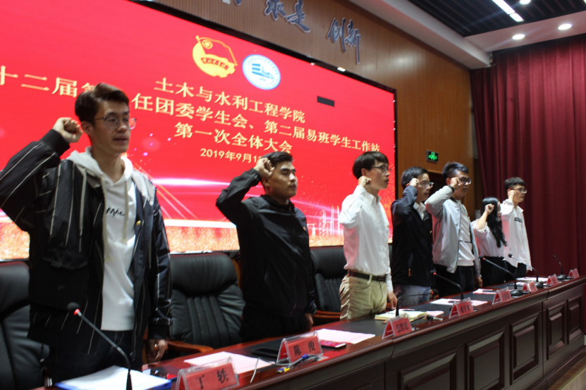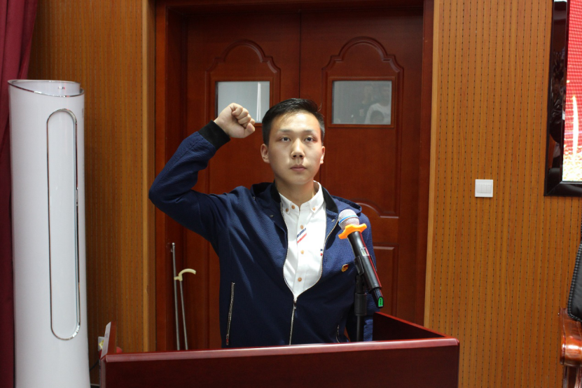 陈俊领誓,全体成员举起右拳庄严宣誓。