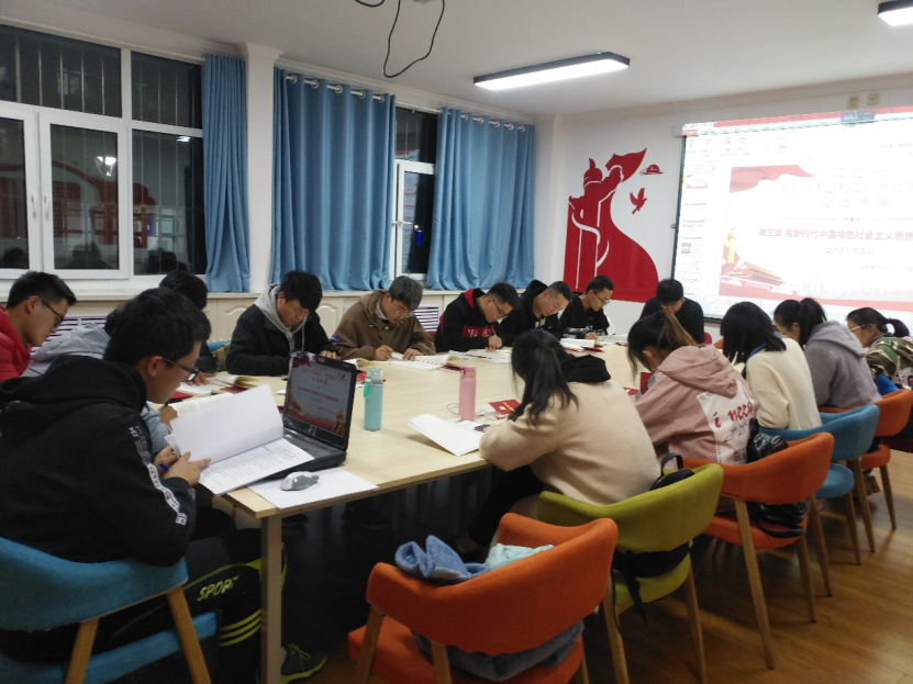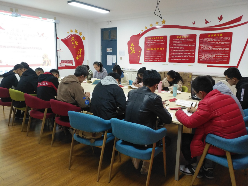 土木本科党支部在党员活动室举、“不忘初心、牢记使命”主题教育学习,在本次学习中由秦尚源、陈亚东同志就《论述摘编》第三章内容:用习近平新时代中国特色社会主义思想武装全党内容进行领学交流。