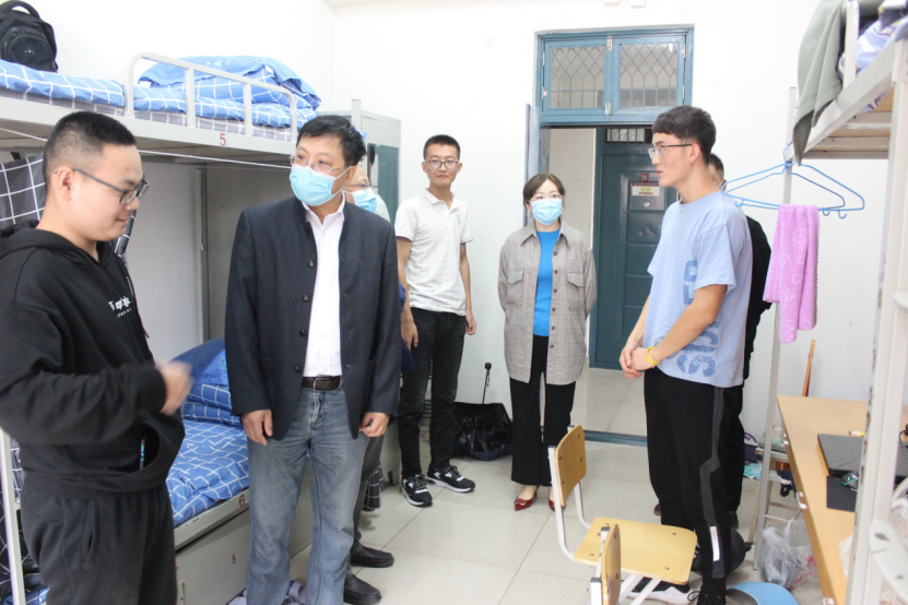 2020年9月13日,快乐8 党委书记张晓天、院长毛明杰、党委副书记柳松洁、2020级本科生辅导员何涛于15号楼公寓看望2020级学生。