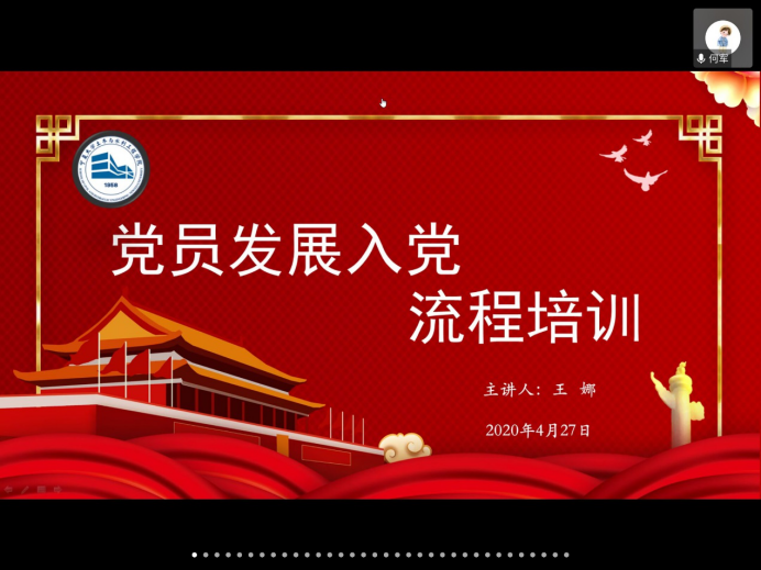 2020年上半学期发展对象与入党积极分子培训班第六次培训利用腾讯会议线上举行,本次培训由学院党委委员王娜老师主讲,2019年下半年和2020年上半年积极分子、2020年上半年发展对象全体学员参加了本次培训。