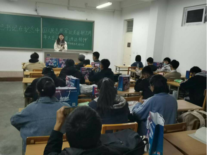 在全院范围内组织开展了以“学习习近平在纪念中国人民志愿军抗美援朝出国作战70周年大会上重要讲话精神”的主题团日活动。全院各级团支部积极响应,在各教学楼开展本次团日活动,活动参与团员人数达850人。