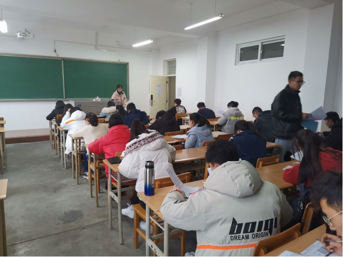 考试当天备考同学积极参与,本次考试完全模拟四六级英语考试的正规流程,所用试题符合四六级考纲的最新要求。考试开始前,监考人员提前到各考场调试听力设备,以确保播放听力环节万无一失。考试开始时,由各个考场监考人员发放试卷与答题卡,严格按照标准时间播放听力,收发答题卡,并维持考场秩序,营造出一个紧张的模拟环境,考生们也认真细心地作答每一道题目。考试结束后,监考人员收取答题卡,考生有序离开各自考场。