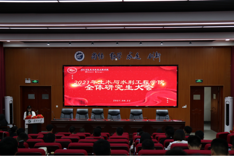 2021年6月22日晚18:30,宁夏大学土木与水利工程学院全体研究生大会于知行楼三阶教室准时召开。参与此次会议的有研究生辅导员徐浩老师、学院研究生会全体成员、优秀毕业研究生代表以及学院全体在校研究生。