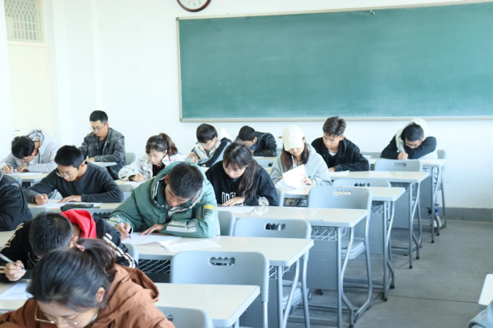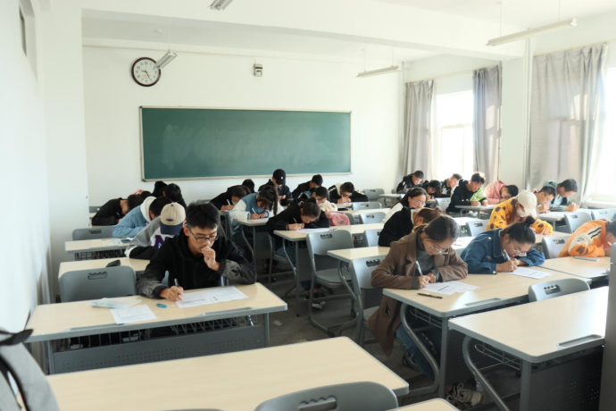 此次英语四、六级模拟考试经过前期的充分准备,考试题目来源权威,考试流程严格按照全国大学生英语四六级考试流程进行,很好的帮助同学们了解考试流程、提高同学们的应试能力和在考场及时调整考试心态的能力、尽早适应考场氛围、进入考试状态,从而发挥自己的最佳水平。考试开始时,由监考同学宣读考试流程和考场纪律并下发试卷和答题卡。考试分为作文、听力、阅读和翻译四个部分,同学们根据考试流程和监考同学的提醒,合理的安排并利用时间进行作答,参加考试的同学们专注于考试,将此次的模拟考试当作真正的考试来进行实战演练,每个人认真答题,奋笔疾书,没有丝毫松懈。监考同学巡视考场,认真监考,保证了考试的公平性,同学们严格遵守考场纪律,考试过程井然有序,考场氛围严肃紧张,体现出了同学们对于此次模拟考试的重视。考试结束之后,同学们纷纷表示,这场模拟考试让他们充分感受到了考试的紧张氛围,找到了自己相对薄弱的题型,为今后的复习打下了良好的基础。