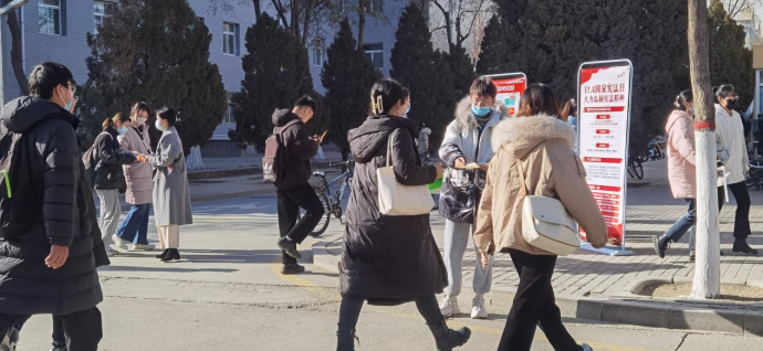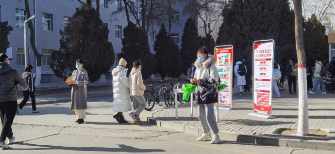 于12月3日下午,组织了由5名党员组成的志愿者小分队,于兰菊苑餐厅门口向来往同学发放普法传单,普及宪法知识。