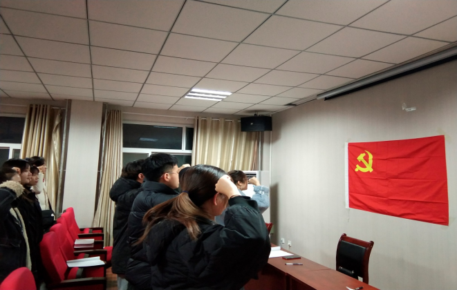 大会第一项,预备党员接受大会。大会对每名拟接收党员资格进行了说明,随后由每一名发展对象对自己的入党动机做了总结并对入党意愿进行表态,第一入党联系人和第二入党联系人对他们的情况及是否推荐入党进行了表态。最后由正式党员进行无记名表决。经无记名投票,十名发展对象全票通过,随后在王娜老师的带领下面对党旗宣誓。本次接受的预备党员有赵娟娟,王进虎,曹健,柳娟,杨佳鹤,郝悦,王玉琦,庞羽茜,丁蓉蓉,司力冰十名同志。