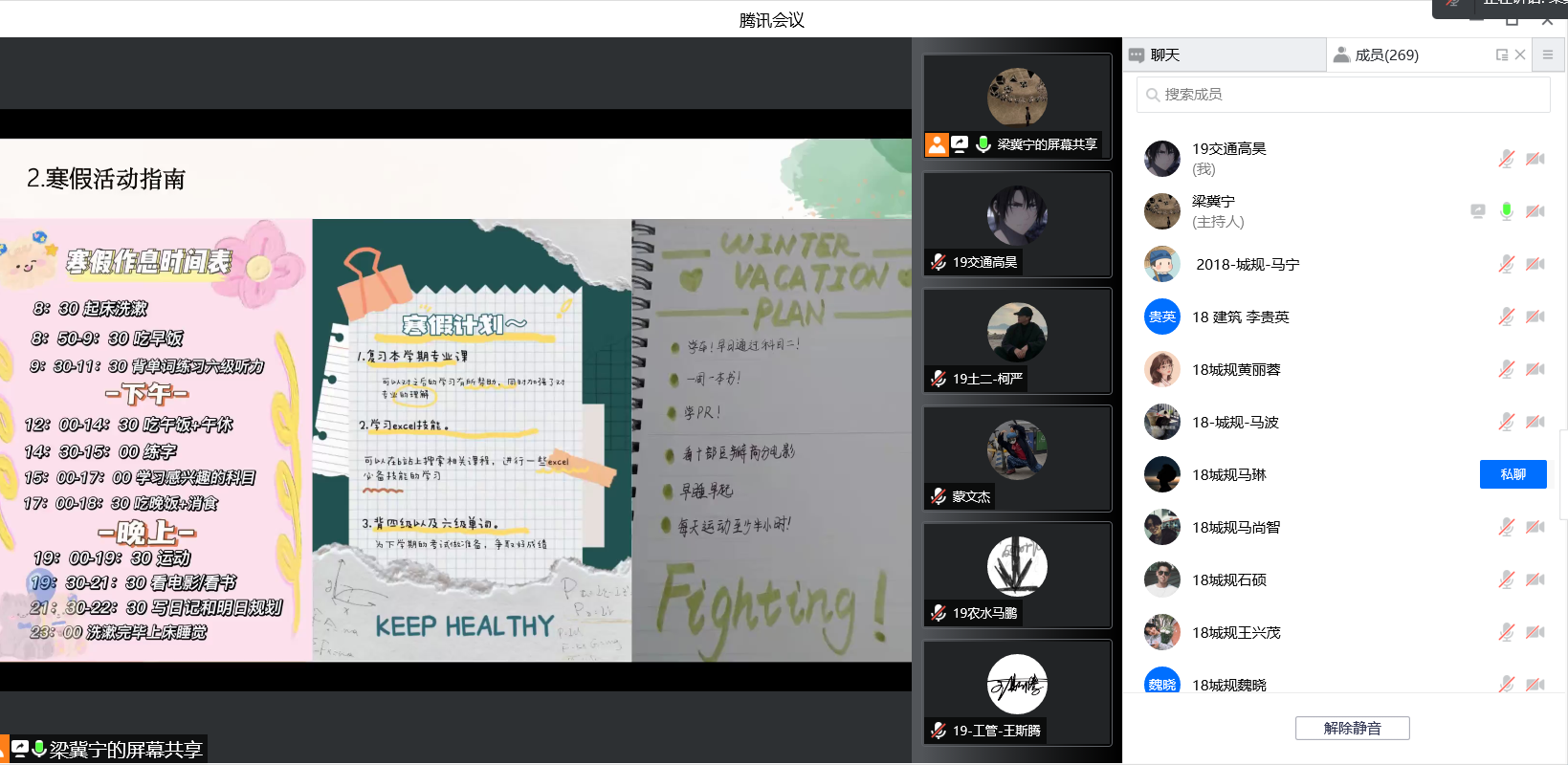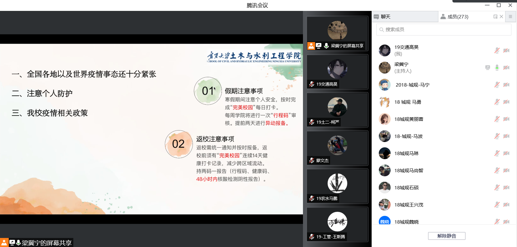 2019级寒假年级大会暨2021-2022学年秋季学期年级学风总结大会在线上腾讯会议召开。2019级全体本科生和2018级建规系本科生参会,会议由2019级本科生辅导员梁冀宁主持。