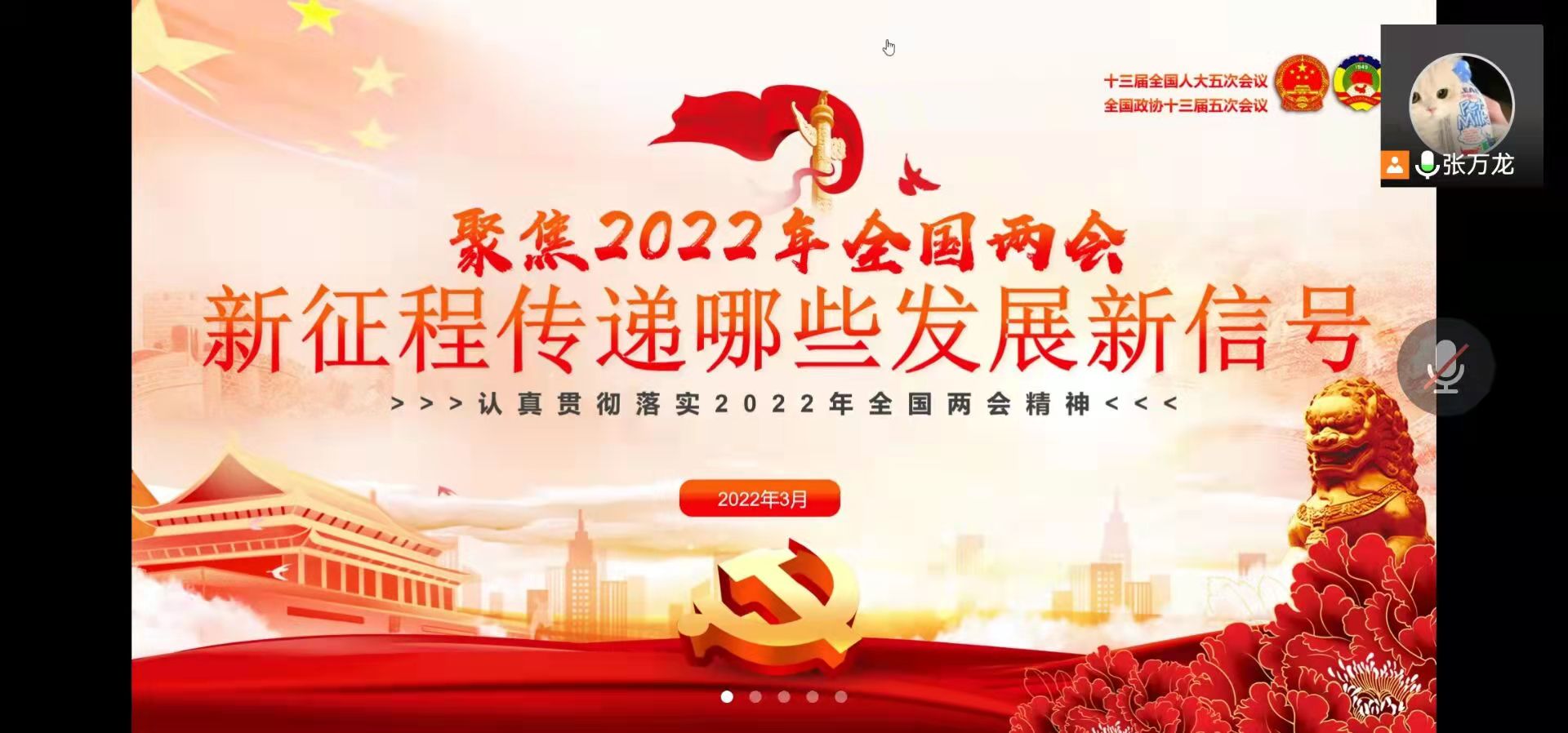 2022年3月19日晚,交管本科党支部线上召开2022年全国两会专题学习。参加此次会议的有党员以及预备党员共30人。本次会议由张万龙同志主持召开,围绕中国人民政治协商会议第十三届全国委员会第五次会议的内容以及会议将释放哪些中国发展的信号展开,本次的学习会从以下四个部分进行介绍。