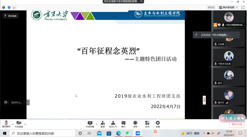 于2022年4月6日至13日组织开展了“百年征程念英烈”主题特色线上团日活动。全院各级团支部积极响应,活动参与团员人数达850人。
