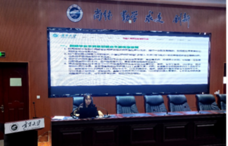 在知行楼3阶教室召开2022年助学贷款服务月暨毕业生资助政策宣讲会,宣讲会采用线上线下的方式同步进行。学院学生资助工作专员、2019级本科生辅导员梁冀宁老师主讲,全体2022届本科生、研究生参加。