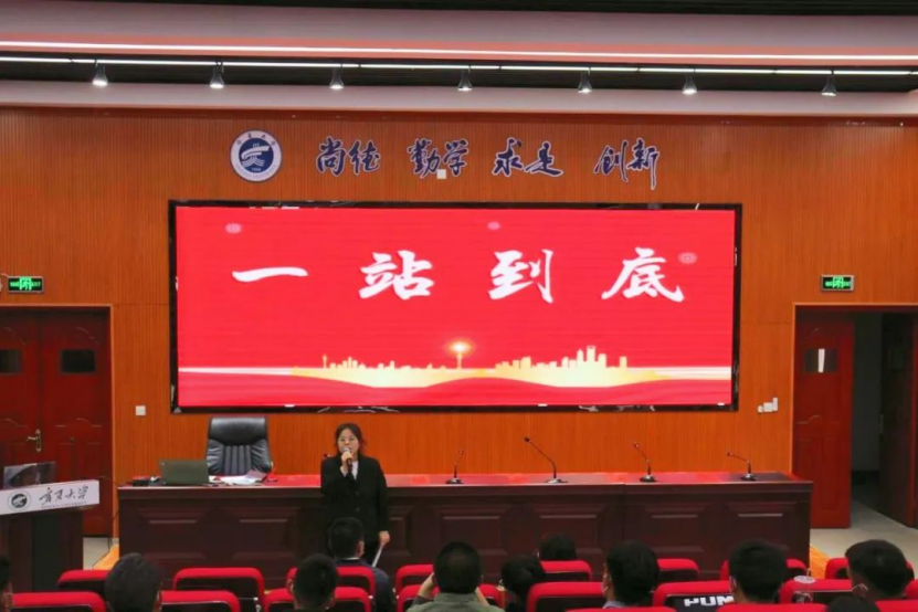 在知行楼三楼阶梯教室举办“一站到底”党团知识竞赛。活动由快乐8