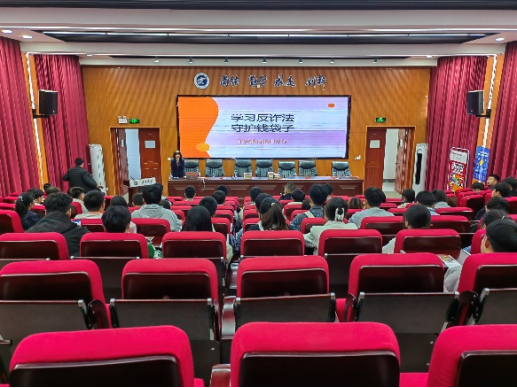 反诈安全教育宣讲员向参会同学讲解了《中华人民共和国反诈法》立法目的及意义,普及了每位公民的责任与义务。现场与同学们分享了电信诈骗的常见手段和方法,以典型案例提醒同学们时刻保持不听信、不转账、不汇款的防诈骗意识。